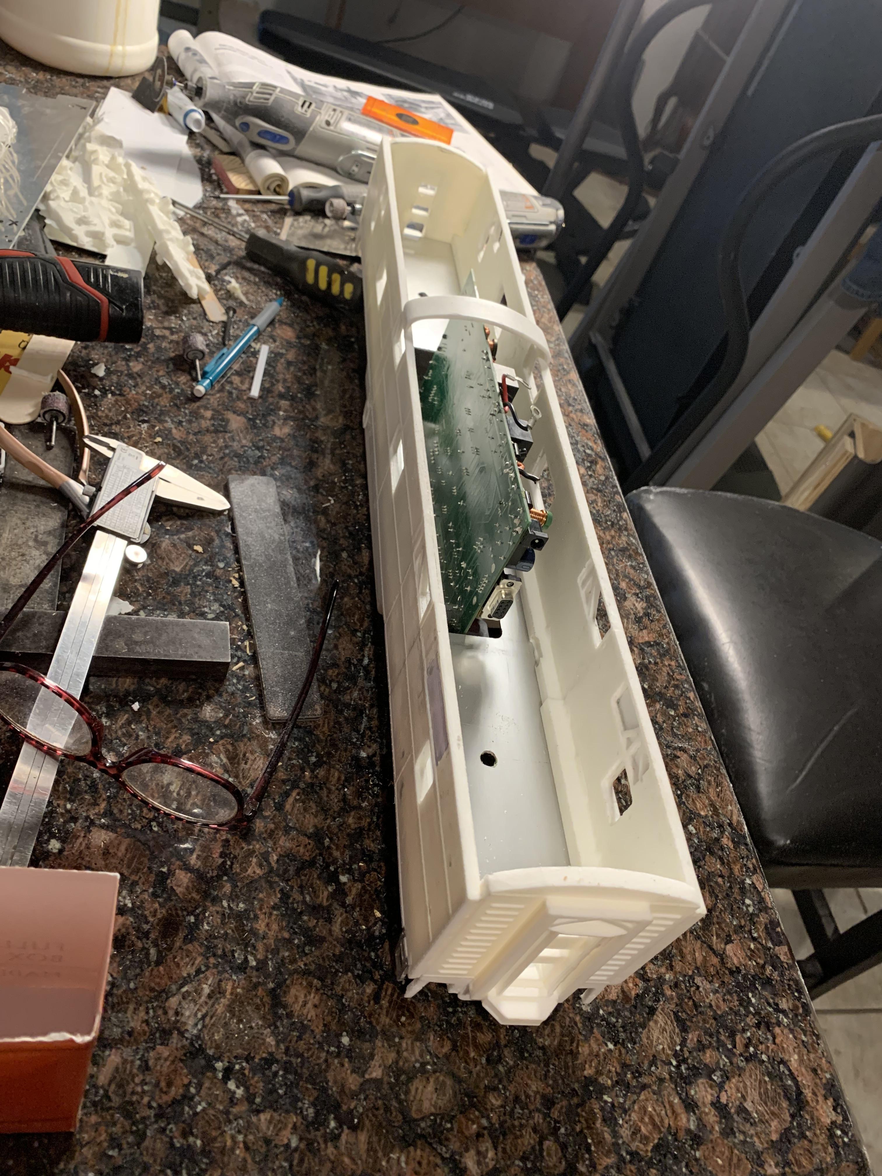 December 9, 20223 yr Author Fitting the mth electronics in the B unit and hope that it clears the trucks, looks like it will. Bob.
