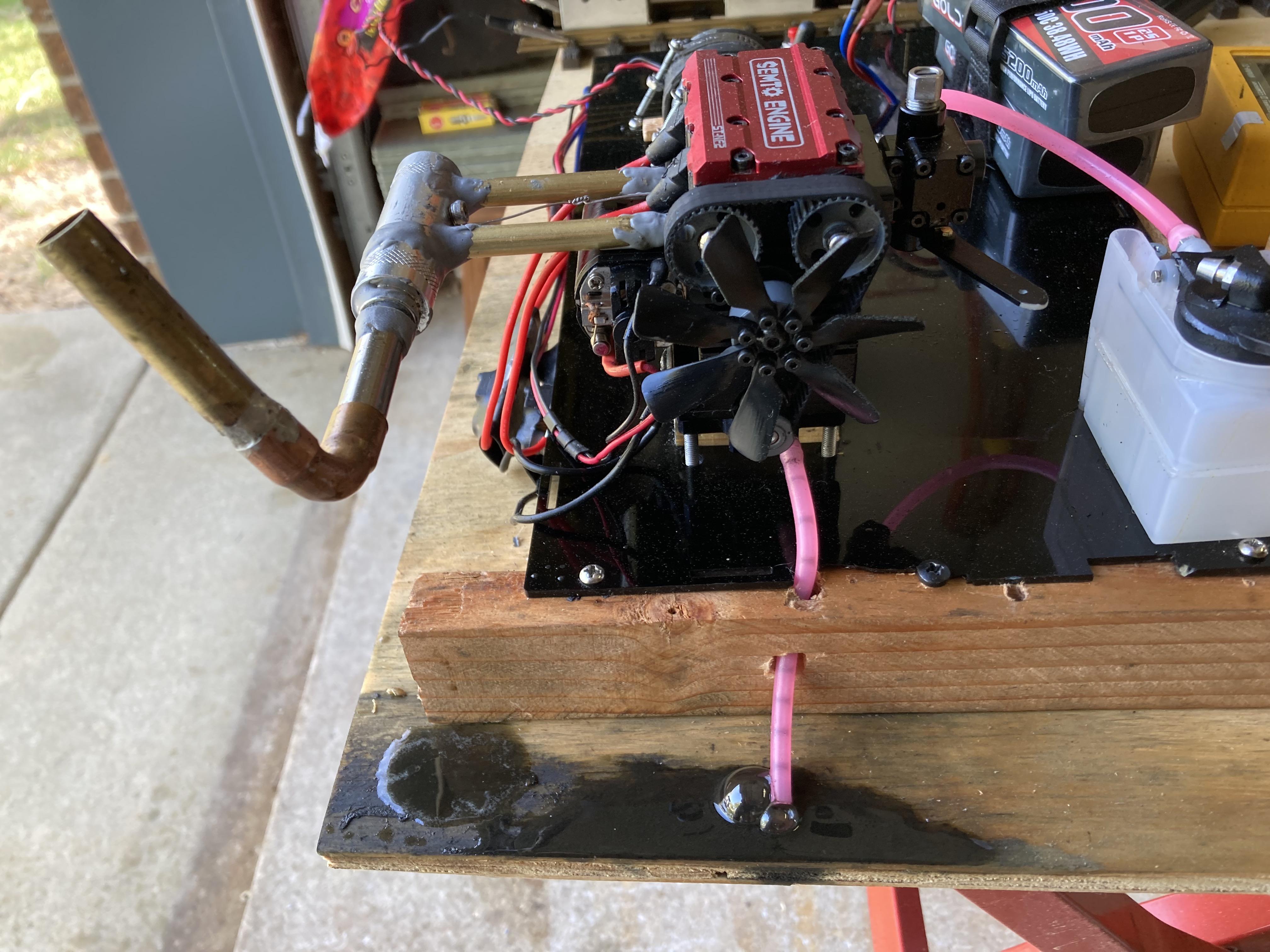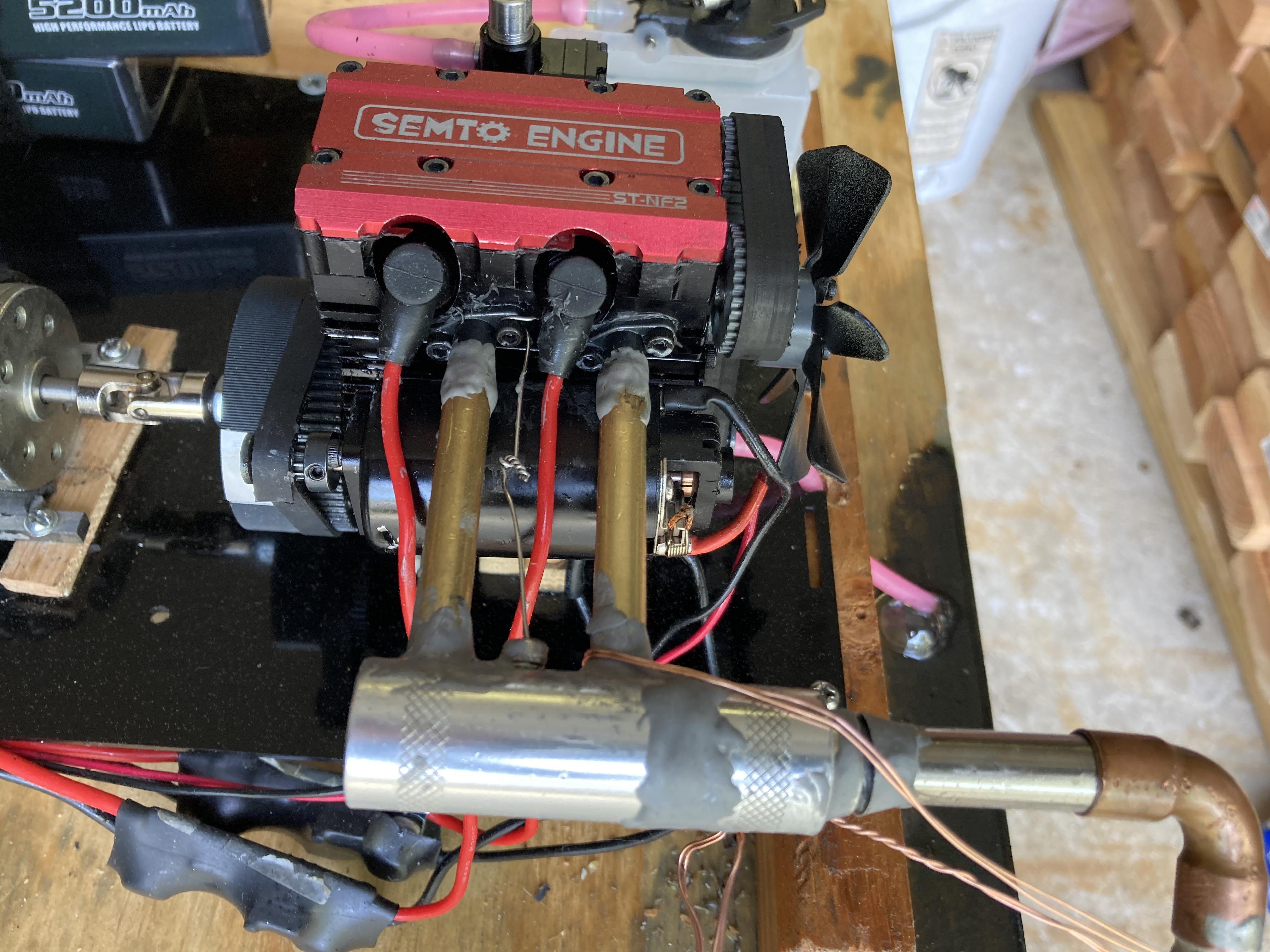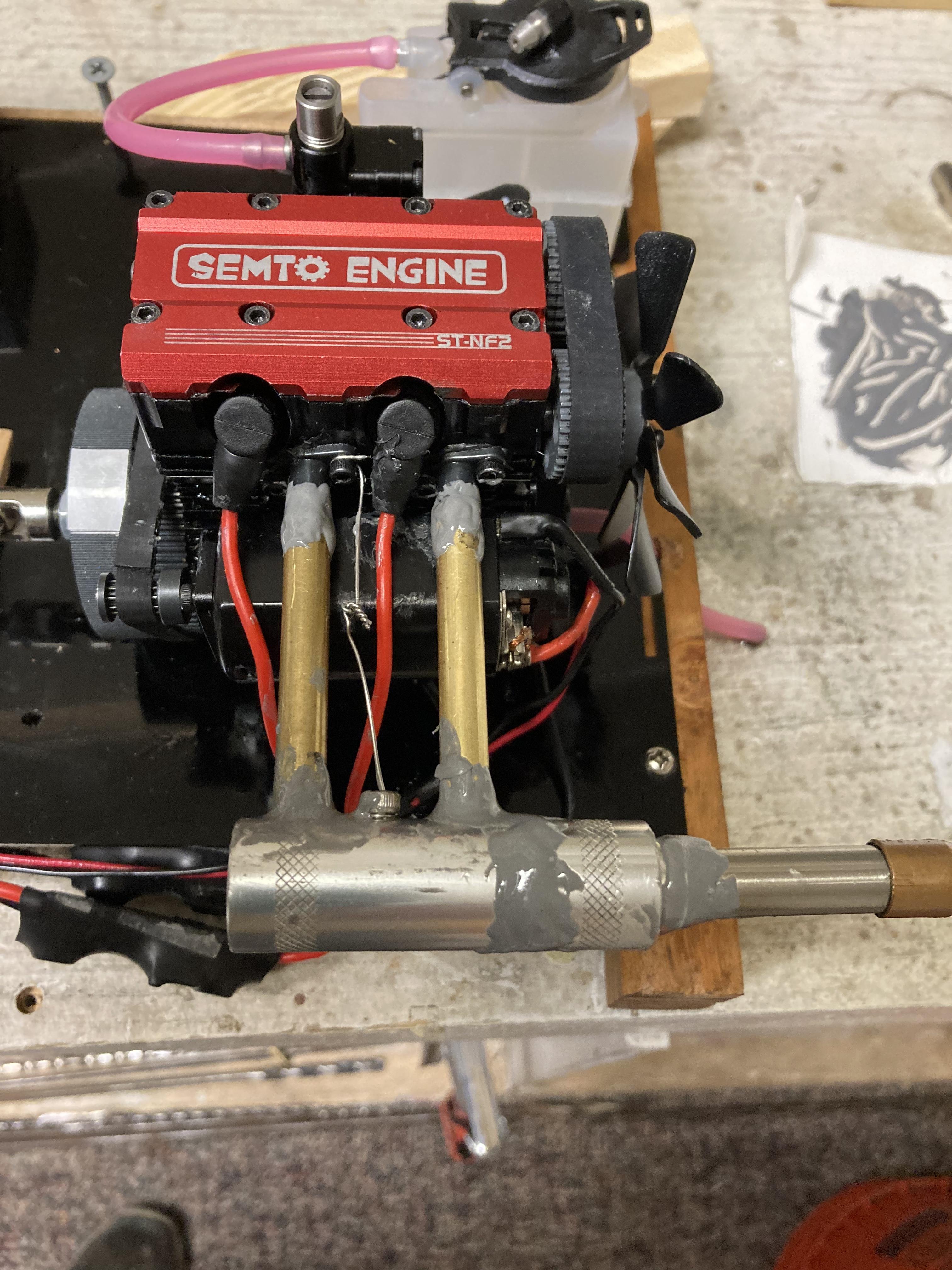 April 30, 2025Apr 30 Author Joe, exactly what I am doing: since it is basically a 2 cycle engine the lube is mixed with the fuel. As is can not use it as I intend with expended oil leaking from the exhaust system joints. Even thought I doubt it, must try, sealed all the seams in the system hoping to limit the mess to the exhaust outlet only. Knowing how hot the nitro fuel gets, don't think the JB will hold for long. If not, just 1 more error to add the list. Previous projects showed the nitro exhaust to be hot enough to loosen silver solder and the parts just fell apart. When in doubt, have a back-up plan at the ready: This is a true 4 cycle gasoline engine, with pumps for lube oil and coolant so the exhaust will be much cleaner. Haven't attempted to start this one yet, only variable to it is the ignition timing. Same as the old Harleys, 2 cylinders spark at the same time only the one with the fuel/air mixture will ignite. https://www.youtube.com/shorts/nrSDpzEZO0s?feature=shareI have my doubts it will fit in the intended target. Carrying on as ordered, SIR.